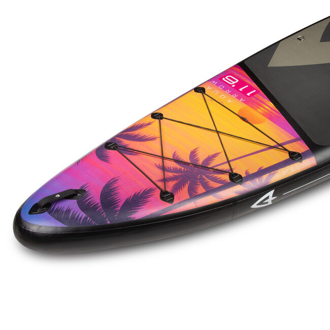 Надувная доска для серфинга Aqua Arrow 11.6 ART Sunset — отличный выбор для всех, кто любит активный отдых на воде. Она подходит как для новичков, так и для опытных спортсменов.